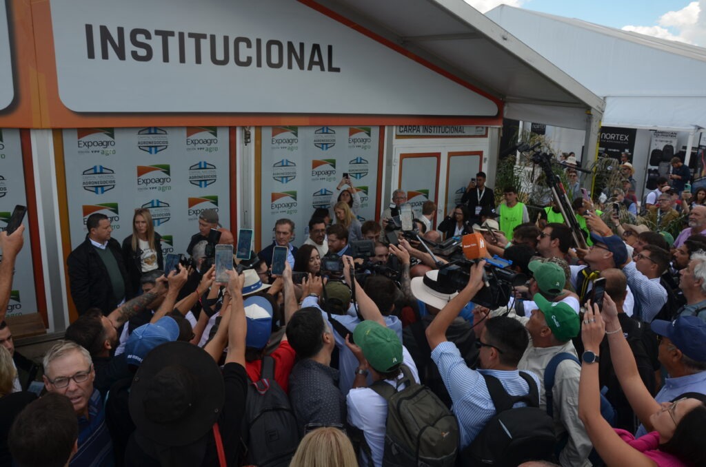 Tras el diálogo que mantuvo Luis Caputo con referentes del sector, durante la segunda jornada de la muestra, la Vicepresidenta eligió no acercar definiciones específicas ni promesas, sino remarcar las intenciones que llegan desde Casa Rosada: “Expoagro es una cita importantísima para la agroindustria. Vengo a dar un gesto de apoyo de parte del Gobierno y el Senado”, destacó.