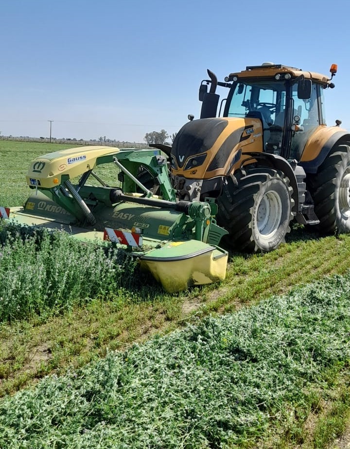 Esa dispersión obliga a una logística ajustada y a contar con un parque de maquinaria amplio: nueve tractores, dos rotoenfardadoras con cutter, una segadora doble de 7,20 metros, rastrillos giroscópicos y estelares, además de equipos de labranza y siembra directa.