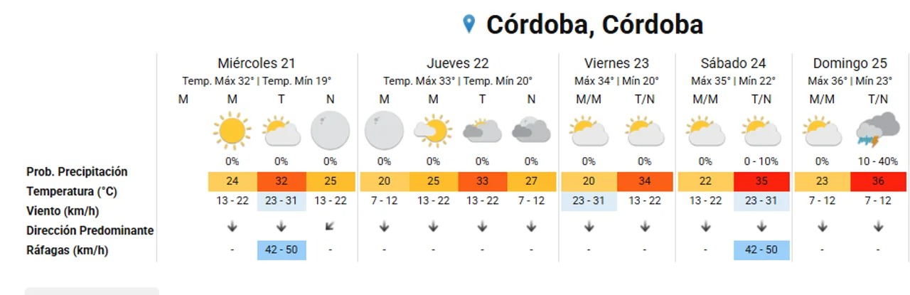 El día más crítico de la semana se proyecta para el sábado, cuando las temperaturas en la capital cordobesa podrían llegar a los 37 grados.