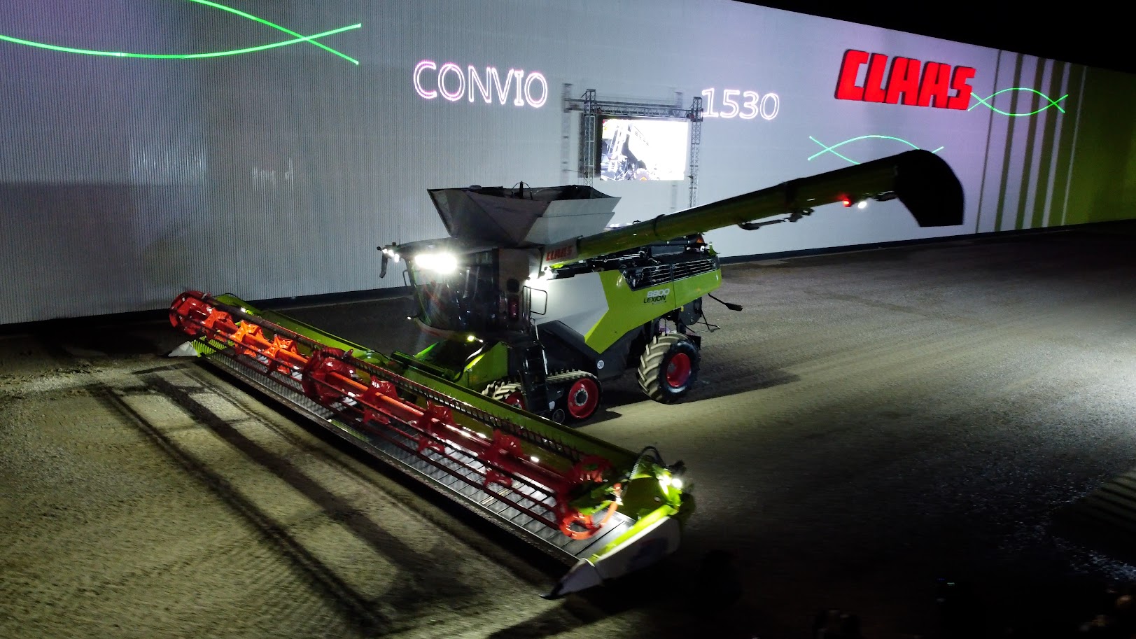 El punto culminante de la presentación fue la LEXION 8800, equipada con el sistema de orugas inteligentes TERRA TRAC, que reduce la compactación del suelo y permite un fácil transporte.