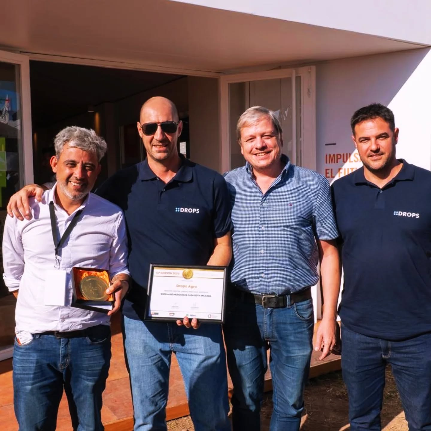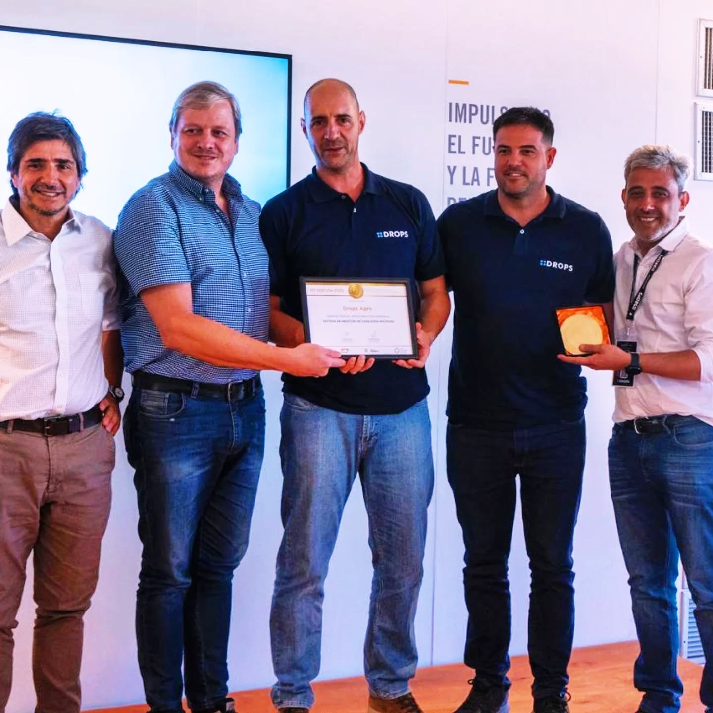 La empresa Drops Agro fue distinguida con la medalla de oro y mención especial en buenas prácticas agrícolas en los premios Ternium durante Expoagro, gracias a un innovador sistema que permite medir cada gota aplicada en pulverización en tiempo real.