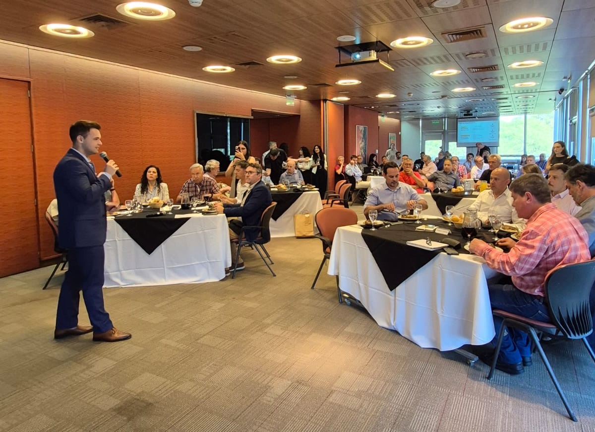El informe "La Macro y Los Granos", elaborado por el departamento de economía de la entidad, fue el eje central del encuentro. La presentación, a cargo del Lic. Agustín Vicari, abordó en profundidad el plan de estabilización implementado por el Gobierno Nacional, el contexto internacional y los objetivos de la política económica actual.