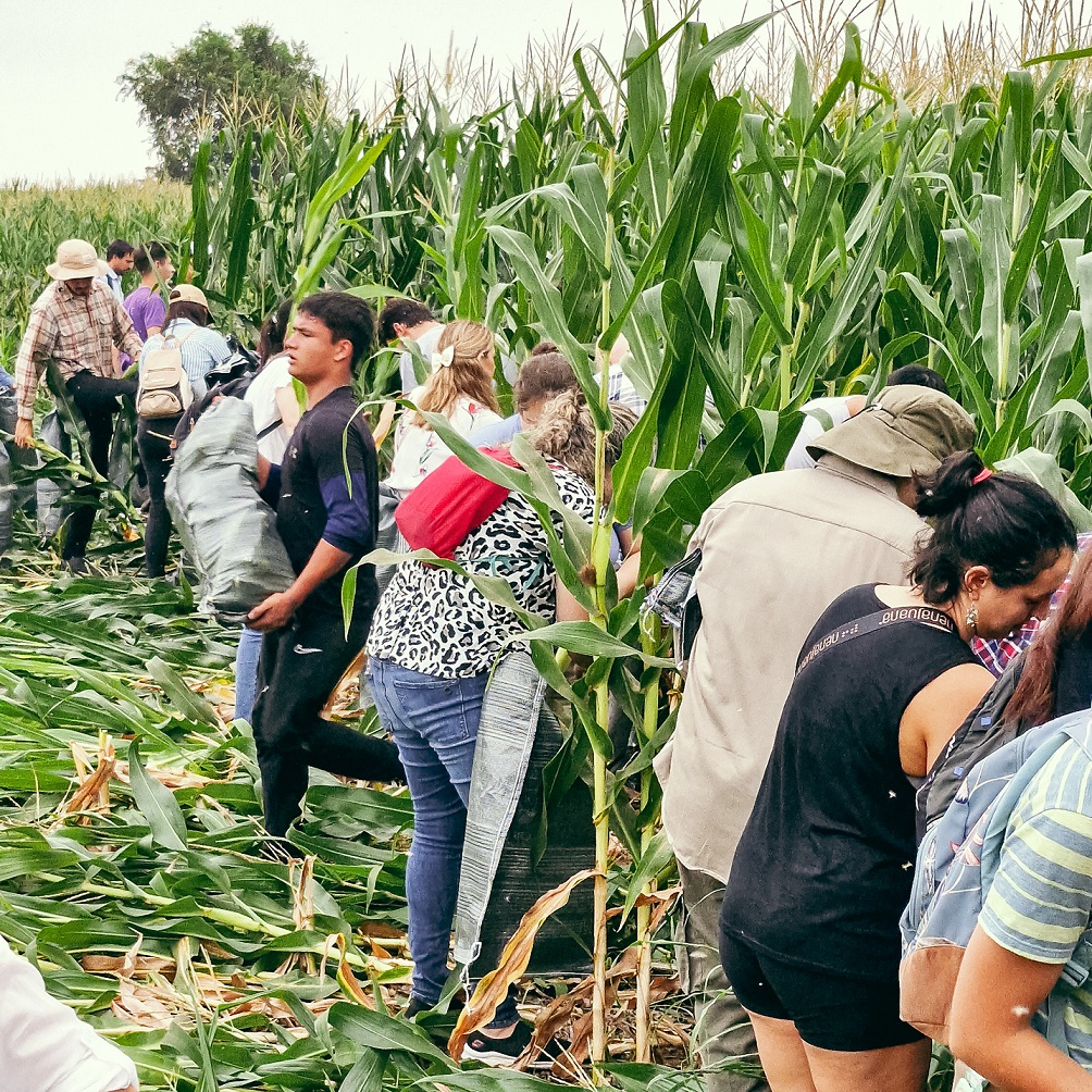 La Chocleada Solidaria consiste en la recolección manual de una hectárea de maíz, que posteriormente es entregada a la Fundación Banco de Alimentos de Córdoba, entidad que distribuye lo cosechado entre más de 500 comedores comunitarios de la ciudad.