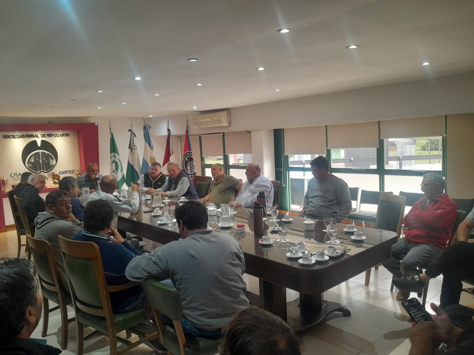 Miembros de la Comisión Directiva de la Sociedad Rural de Río Cuarto, encabezados por su presidente Heraldo Moyetta, recibieron en la sede institucional a representantes de FECOTAC, junto a transportistas y referentes de empresas del sector.